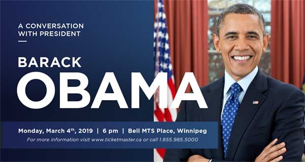 TINEPUBLIC is pleased to announce “A Conversation with President Barack Obama” in Winnipeg on Monday March 4th 2019 at Canada Life Centre.