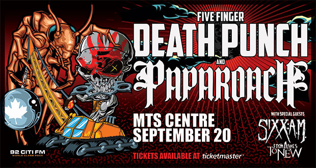 With 10 #1 singles and over 25 Top 10 singles between them, millions of video streams and fans all over the globe, FIVE FINGER DEATH PUNCH and PAPA ROACH have been dominating the airwaves throughout their careers. Both bands—who have been heralded, by fans and press alike, as having killer live shows—have come together to co-headline Canadian arenas from coast to coast for the first time this fall, presented by Mascioli Entertainment and Evenko with $1 of each ticket sold being donated to a wildfire relief charity organization soon to be announced. See the tour dates further below and watch a special teaser previewing the Canadian Tour here. Ticket prices start at $36.59 plus fees.