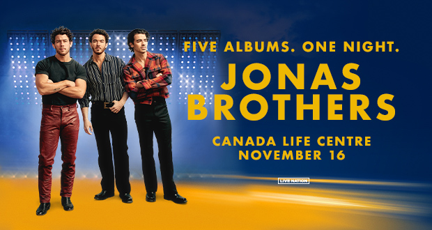 Jonas Brothers Published: July 27, 2023 Buy TicketsDateNovember 16, 2023Start time7:00 pmThe Jonas Brothers take THE TOUR global, bringing it to Canada Life Centre on November 16! Five albums. One night. Lawrence will join as support across the North American dates.