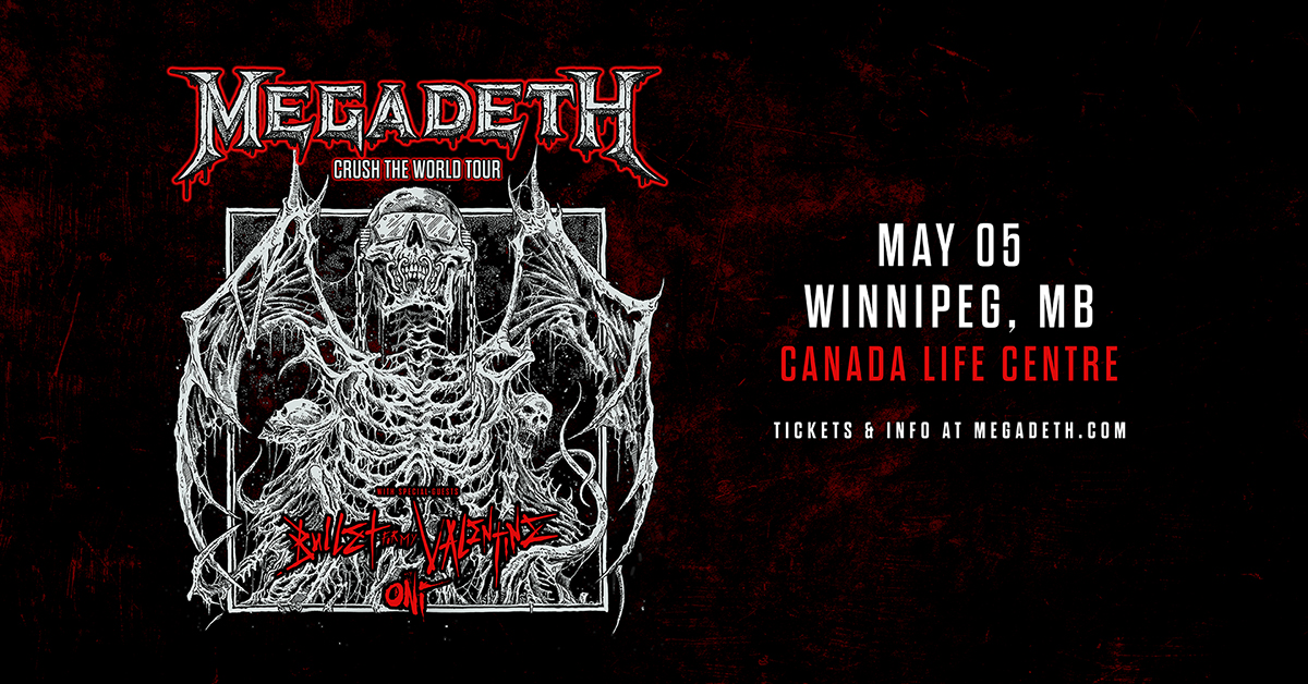 “We cannot wait to bring Megadeth’s Crush The World tour to the Great White North – I’m still riding high from our Sold Out Budokan show with Marty Friedman last week, but there is no letting up and it’s your turn, Canada. Get ready!” -Dave Mustaine