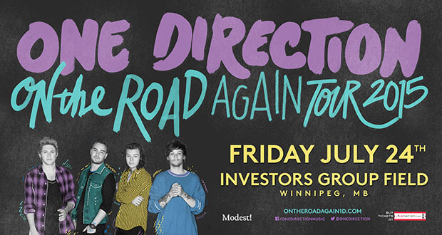 Global superstars One Direction today announced the Canadian dates for their highly-anticipated ON THE ROAD AGAIN 2015 stadium tour, which will see the band perform in Australia, Japan and South East Asia in support of their new album FOUR (to be released Nov. 17). The North American tour, promoted by Live Nation, kicks off on July 9, 2015 at the Qualcomm stadium in San Diego, Cali. Canadian dates on the North American leg of the tour includes stops in Vancouver, Edmonton, Winnipeg, Toronto, Montreal and Ottawa. All Canadian dates, with the exception of Ottawa, will go on sale Nov. 1. For a full list of European and North American tour dates and on-sale dates, see below.