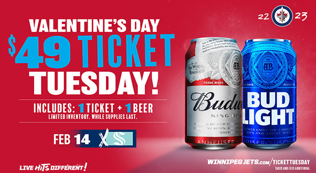 *Beer vouchers will be available for pick up outside Section 322 at the game until the start of the third period. Voucher is redeemable for 1 can of Budweiser, Bud Light, or non-alcoholic beer, bottled pop, or bottled water at any concession or bar location.